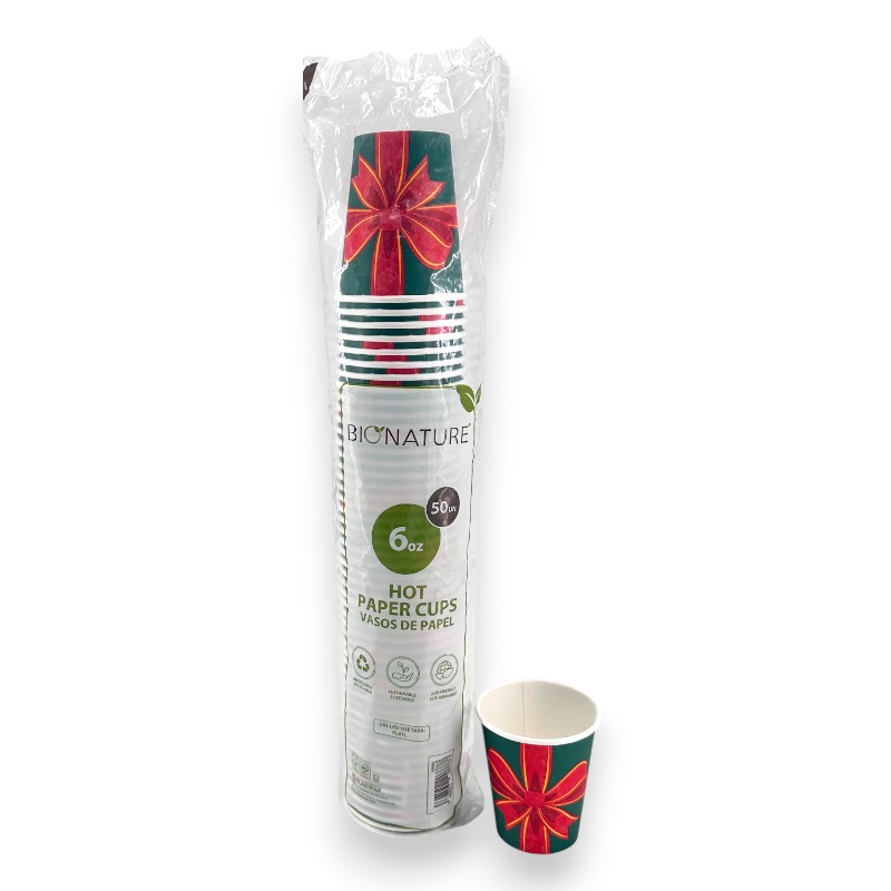 / Vaso Papel Impreso NAVIDAD 6oz BIONATURE (PHC6-G) 20/50 Caja
